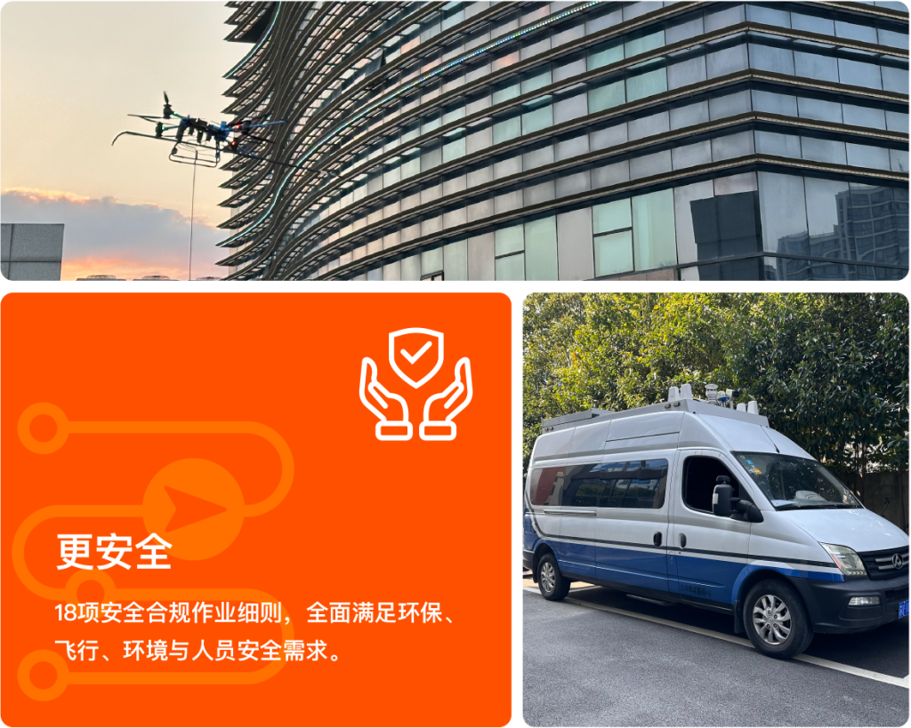 奇点智飞专注无人机AI飞行,是以智能无人机技术创造低空价值、提升社会效率的创新科技企业。我们具备完整的智能无人机系统研发能力,涵盖智能无人机、管理平台、智能飞行算法与数据分析平台,在智能幕墙清洗无人机领域居于行业领先。